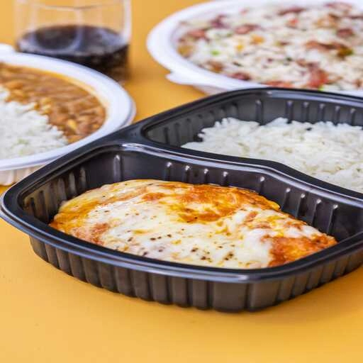 Deliciosa Parmegiana de Filé Mignon 160g, com molho de tomate caseiro e mussarela.